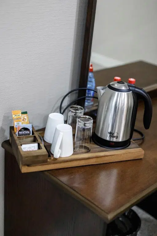 Indulge in a moment of tranquility as you brew your favorite tea from a selection of premium blends, including soothing herbal infusions and invigorating black teas. Our tea station is equipped with a kettle, elegant cups, and all the essentials to create your perfect cup.